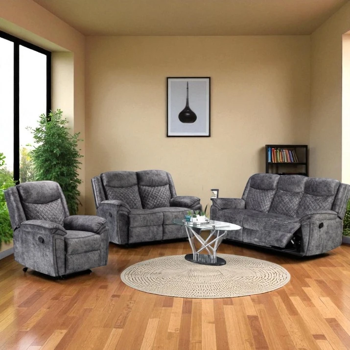 The Belair Recliner Sofa is designed for ultimate comfort and modern style, making it a perfect addition to any living room. Its sleek grey upholstery, plush cushioning, and smooth reclining mechanism create a relaxing seating experience ideal for everyday comfort and home entertainment.