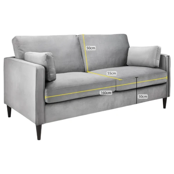 The sofa is covered in high-quality velvet with a smooth, comfortable feel and flexible muted beige color.